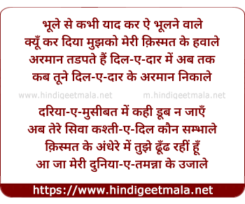 Lyrics of Bhule Se Kabhee Yad Kar Ai Bhulane Wale - भूले से कभी याद कर ऐ भूलने वाले