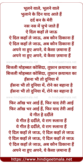Lyrics of Bhulne Wale Dil Kaha Le Jau - भूलने वाले, भूलने वाले