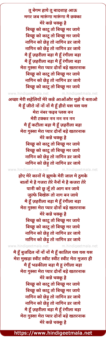 Lyrics of Bichhu Ko Katu To Bichhu Mar Jaye - बिच्छू को काटू तो बिच्छू मर जाये