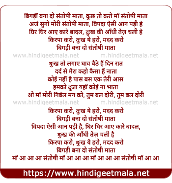 Lyrics of Bigadee Bana Do Santoshee Mata - बिगड़ीं बना दो संतोषी माता