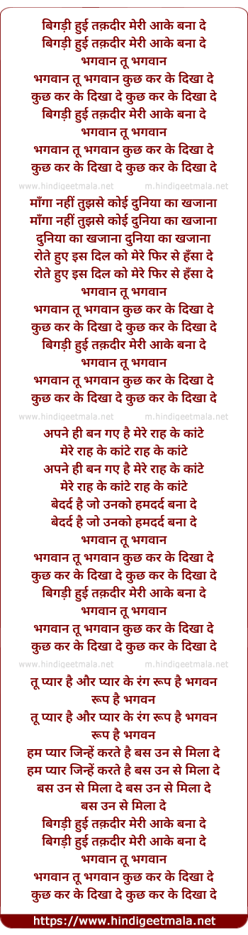 Lyrics of Bigadi Hui Takdeer Meri Aa Ke Bana De - बिगड़ी हुई तक़दीर मेरी आके बना दे