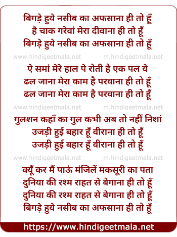 Lyrics of Bigde Huye Naseeb Ka Afsana - बिगड़े हुये नसीब का अफसाना ही तो हूँ