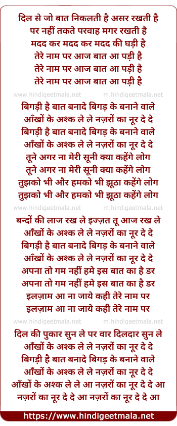 Lyrics of Bigdi Hai Baat Bana De, Bigdi Ke Banane Wale - बिगड़ी है बात बना दे, बिगड़ी के बनाने वाले