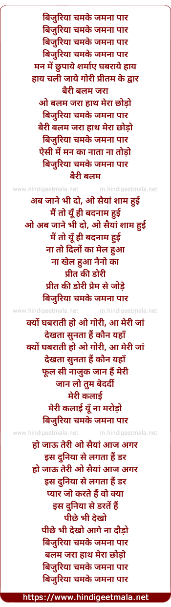 Lyrics of Bijuriya Chamke Jamna Paar - बिजुरिया चमके जमना पार