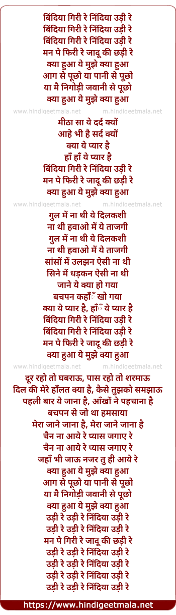 Lyrics of Bindiya Giri Re - बिंदिया गिरी रे