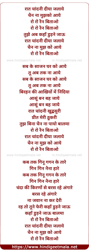Lyrics of Birah Vitha Bite Nahi - बिरह विथ बिता नहीं