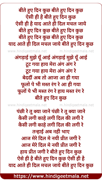 Lyrics of Bite Huye Din Kuchh Aise Hi Hai - बीते हुए दिन कुछ ऐसे ही है