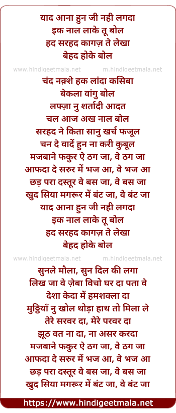 Yaadana Hun Ji Nai Lagda (Bol) - याद आना हुन जी नही लगदा
