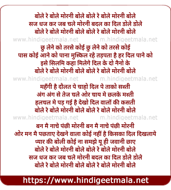 Lyrics of Bole Re Bole Morni Bole - बोले रे बोले मोरनी बोले
