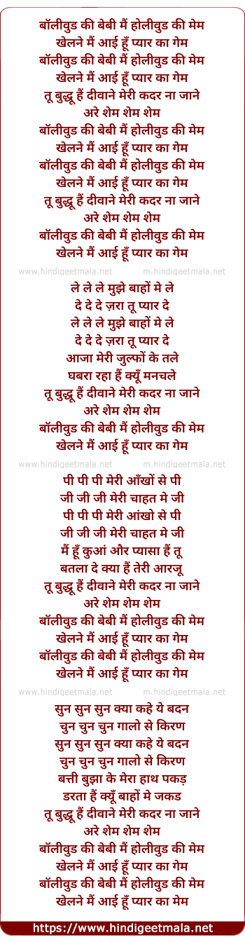 Lyrics of Bollywood Ki Baby - बॉलीवुड की बेबी