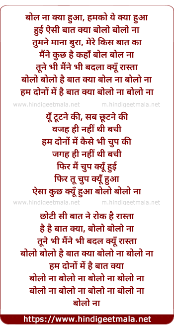 Poetic Translation - Lyrics of Bolo Na (House Mix) - बोलो ना