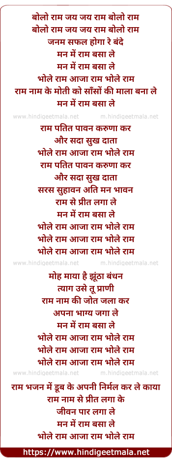 Lyrics of Bolo Ram Jai Jai Ram - बोलो राम जय जय राम बोलो राम