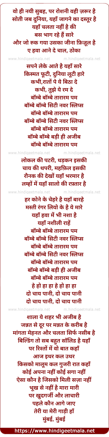 Lyrics of Bombay Bombay Tararam Pam - बॉम्बे बॉम्बे तारारम पम