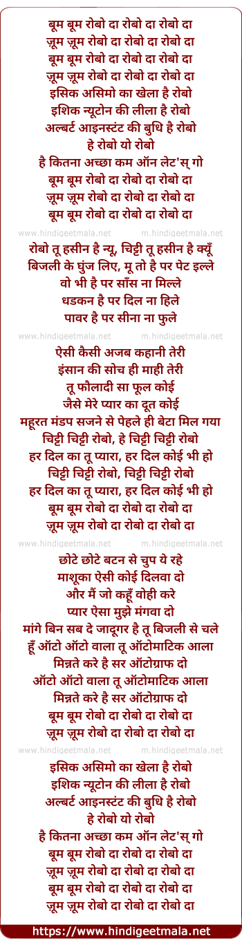 Lyrics of Boom Boom Robo Da - बूम बूम रोबो दा