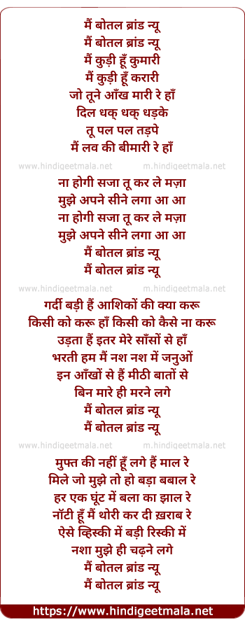 Lyrics of Botal Brand New - बोतल ब्रांड न्यू