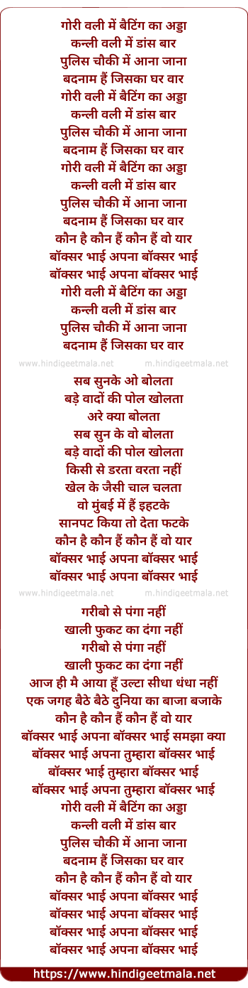 Lyrics of Boxer Bhai, Apna Boxer Bhai - बॉक्सर भाई, अपना बॉक्सर भाई