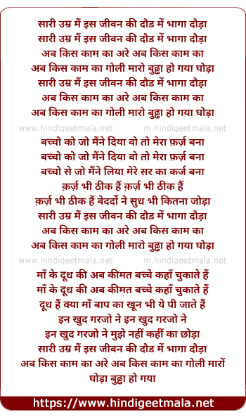 Lyrics of Buddha Ho Gaya Ghoda - बुढ्ढा हो गया घोड़ा