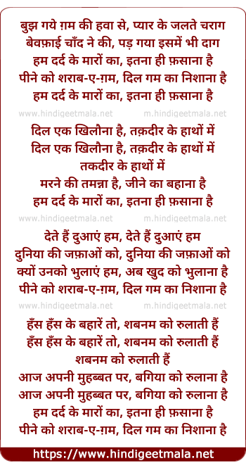 Lyrics of Ham Dard Ke Maron Ka Itna Hi Fasana Hai - हम दर्द के मारों का इतना ही फ़साना है