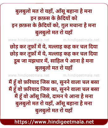 Lyrics of Bulbulo Mat Ro Yaha, Aansu Bahana Hai Mana - बुलबुलो मत रो यहाँ, आँसू बहाना है मना