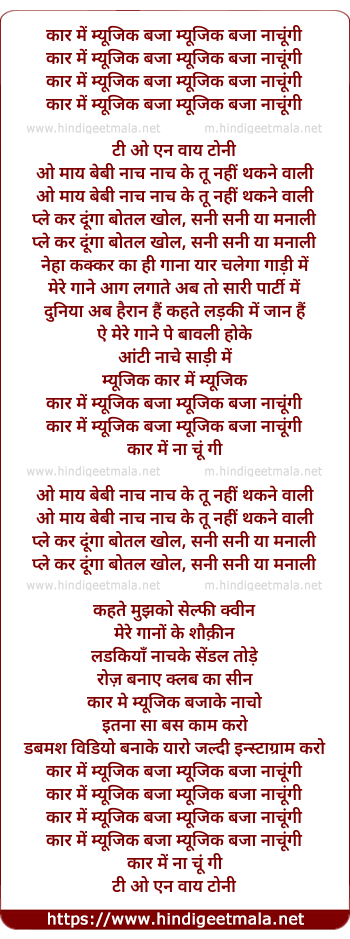 Lyrics of Car Mein Music Baja - कार में म्यूजिक बजा म्यूजिक बजा नाचूंगी