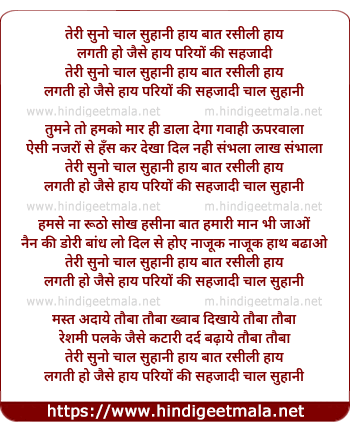Lyrics of Chaal Suhani Haye, Baat Rasili Haye, Lagti Ho Jaise Haye - चाल सुहानी हाय बात रसीली हाय,लगती हो जैसे हाय