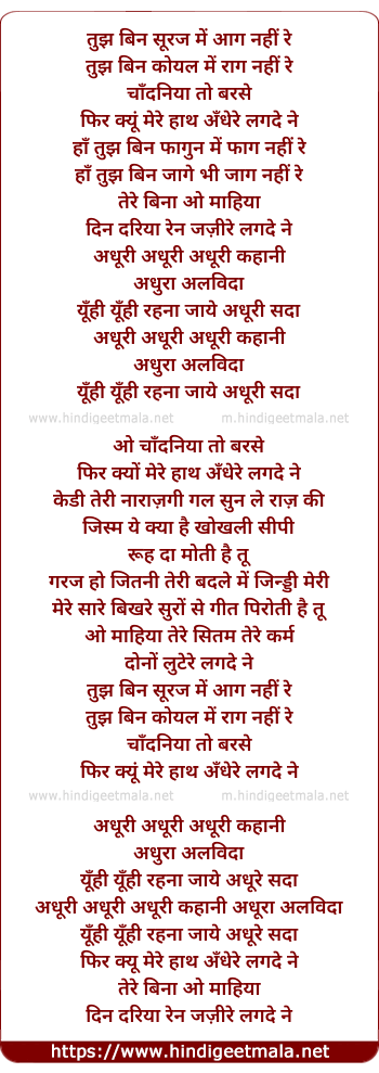 yuhi yuhi rahna jaye adhure sada adhuri adhuri adhuri kahani
