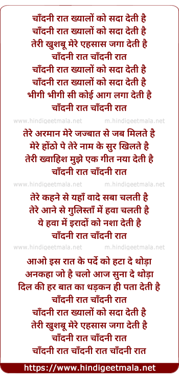 Lyrics of Chaandni Raat - चाँदनी रात ख्यालों को सदा देती है