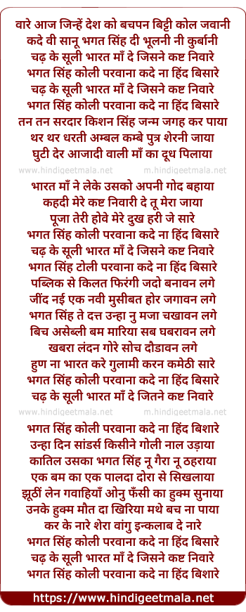 bhagat singh koli parwana kade na hind bisare