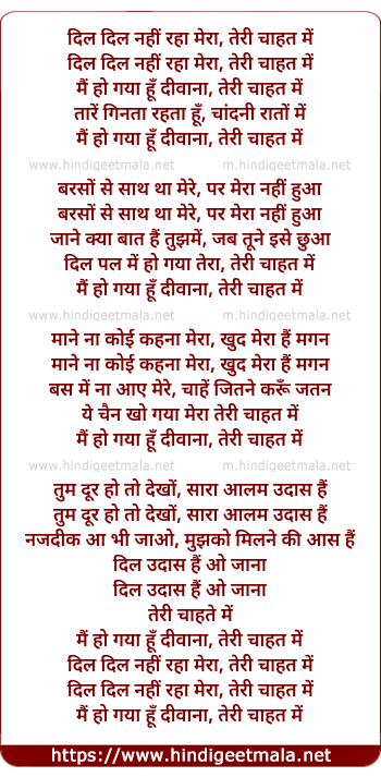Lyrics of Chahat Me - दिल दिल नहीं रहा मेरा, तेरी चाहत में