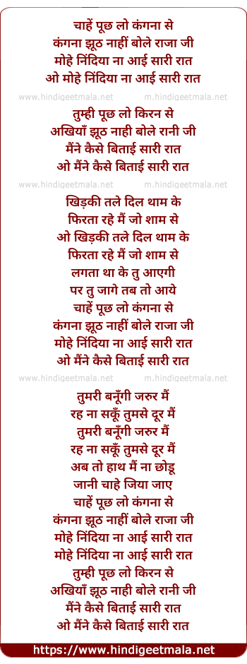 Lyrics of Chahe Puchh Lo Kangana Se - चाहें पूछ लो कंगना से