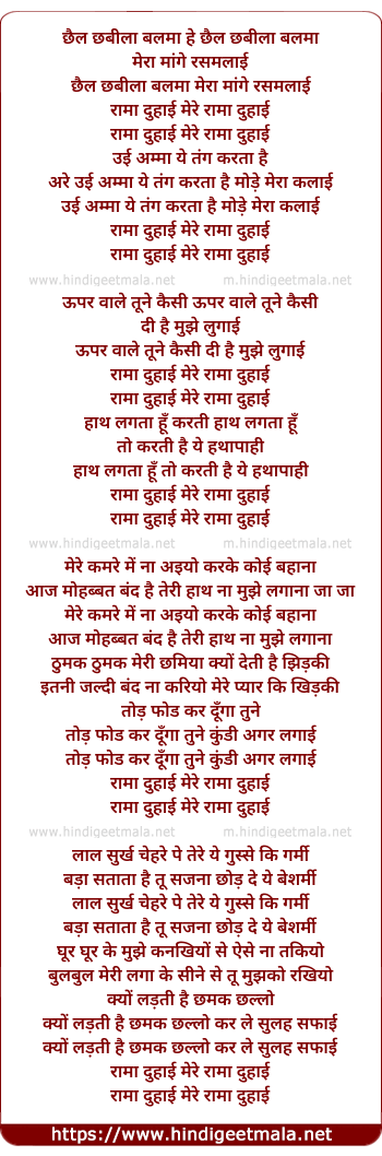 Lyrics of Chhail Chabila Balma Mera - छैल छबीला बलमा मेरा