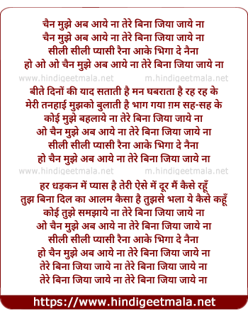 Lyrics of Chain Mujhe Ab Aaye Naa - चैन मुझे अब आये ना