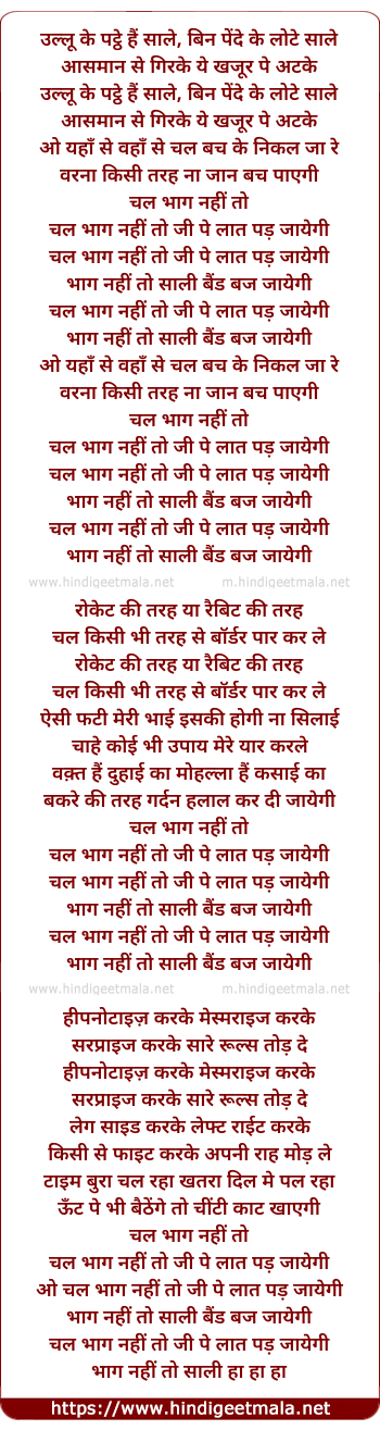 Lyrics of Chal Bhaag Nahi To - चल भाग नहीं तो