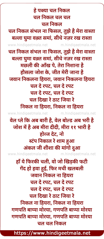 Lyrics of Chal De Rapaat - चल दे रपट