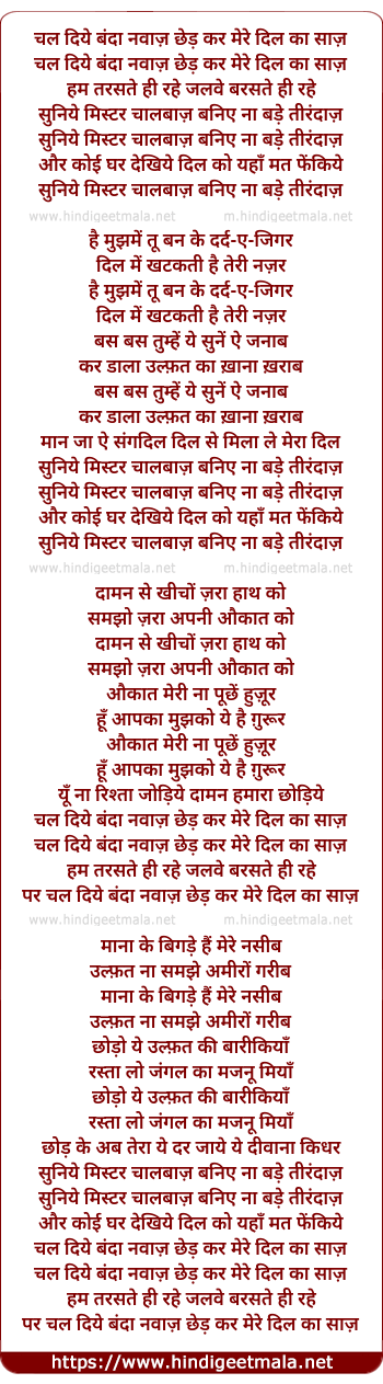 Lyrics of Chal Diye Banda Nawaz - चल दिये बंदा नवाज़