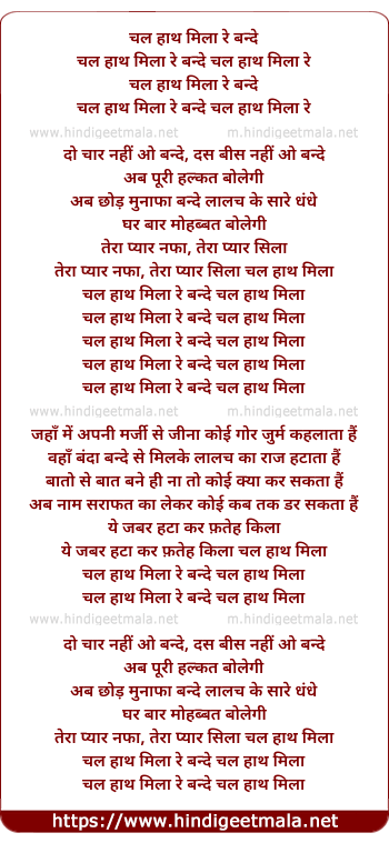 Lyrics of Chal Haath Mila Re Bande - चल हाथ मिला रे बन्दे