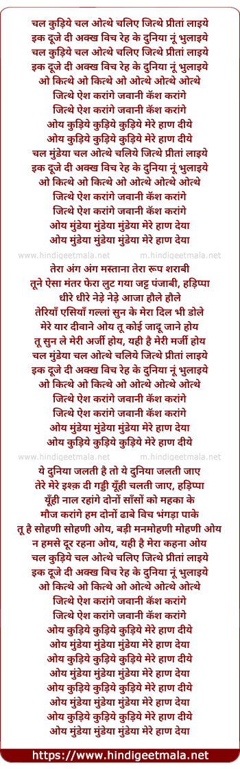 Lyrics of Chal Kudiye Chal Otte Chaliye - चल कुड़िये चल ओत्थे चलिए