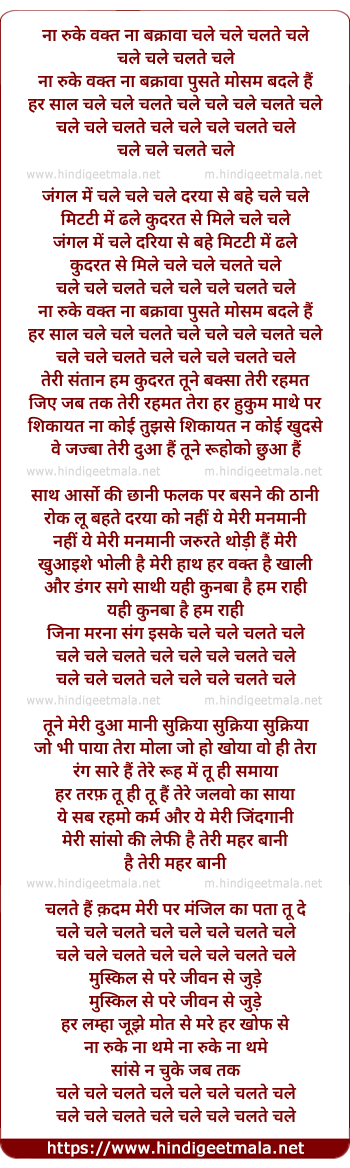 Lyrics of Chale Chale Chalte Chale - चले चले चलते चले