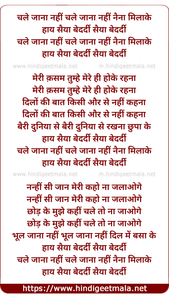 Lyrics of Chale Jana Nahi Nain Milake - चले जाना नहीं नैना मिलाके