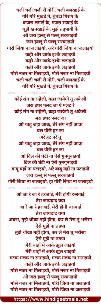 Lyrics of Chali Chali Ri Gori - चली चली री गोरी