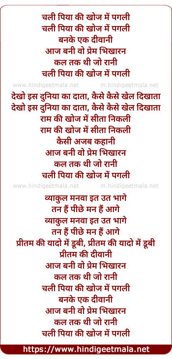 Lyrics of Chali Piya Ki Khoj Me Pagli - चली पिया की खोज में पगली