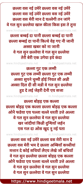 Lyrics of Challa Vas Nhi O Mere - छल्ला वस नई उमेरे छल्ला वस नई उमेरे