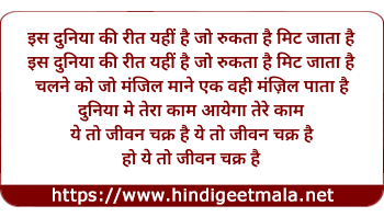 Lyrics of Ye To Jiwan Chakkar Hai - ये तो जीवन चक्र है
