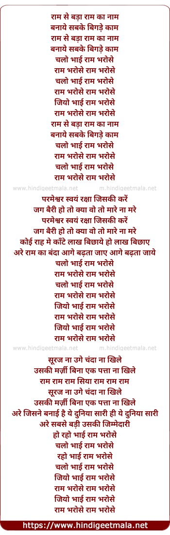 Lyrics of Chalo Bhai Ram Bharose - चलो भाई राम भरोसे