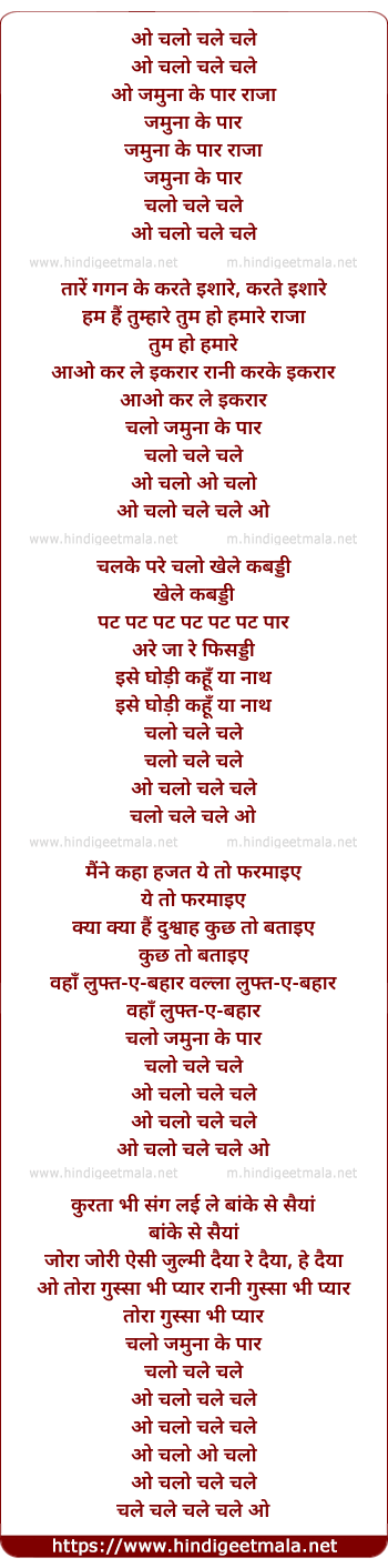Lyrics of Chalo Chale Jamuna Ke Paar Raja - चलो चले जमुना के पार राजा