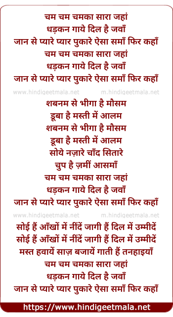 Lyrics of Cham Cham Chamakaa Saaraa Jahaan - चम चम चमका सारा जहां