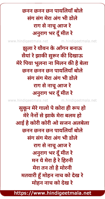 Lyrics of Chanan Chanan Payaliya Bole - छनन छनन छन पायलियाँ बोले