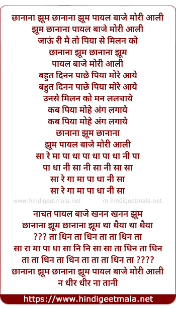 chhana jhum chhana jhum payal baaje mori aali