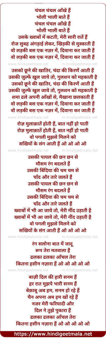 Lyrics of Chanchal Chanchal Aankhe Hain - चंचल चंचल आँखे हैं