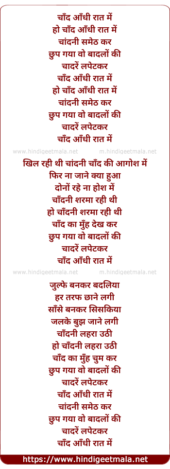 Lyrics of Chand Aadhi Raat Me - चाँद आँधी रात में